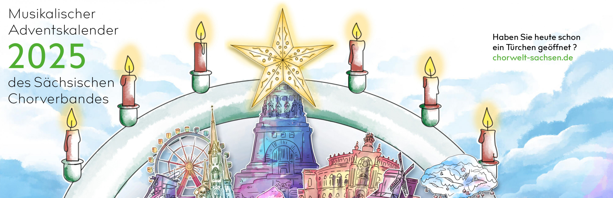 Auch in diesem Jahr gibt es ihn wieder: den musikalischen Adventskalender des Sächsischen Chorverbandes. Vom 1. bis zum 24. Dezember wird sich jeden Tag ein Fenster öffnen. Lassen Sie sich überraschen, welche musikalische Einstimmung auf das Weihnachtsfest sich dahiner verbirgt.
